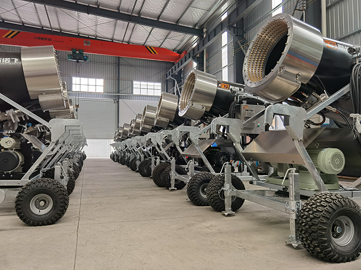 公司成立多年來,擁有自己固定生產人員和專業團隊。本公司生產的造雪機按規格分類有大型、中型、小型、微型四個品種;按使用環境分類有不帶高壓水泵和自帶高壓水泵兩大類;按走行方式分類有拖拉式走行和自主走行兩類。